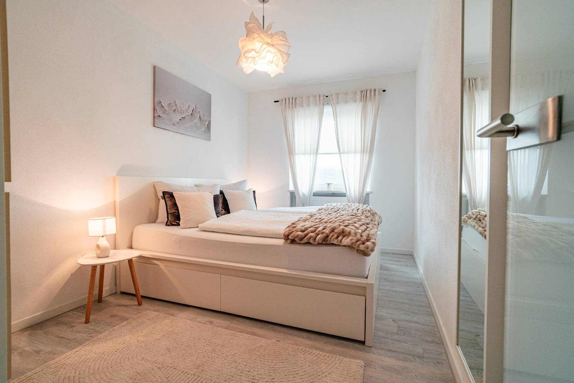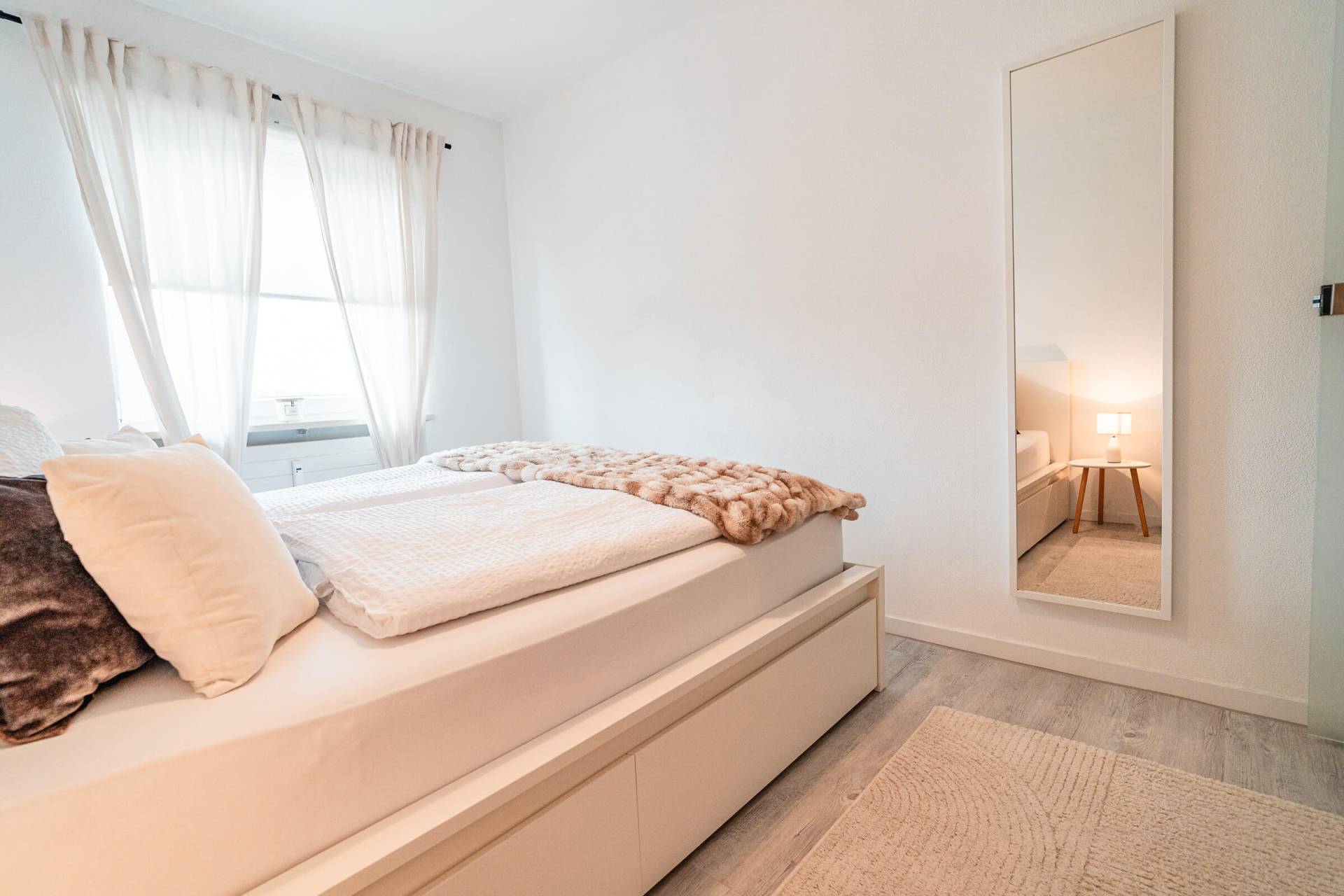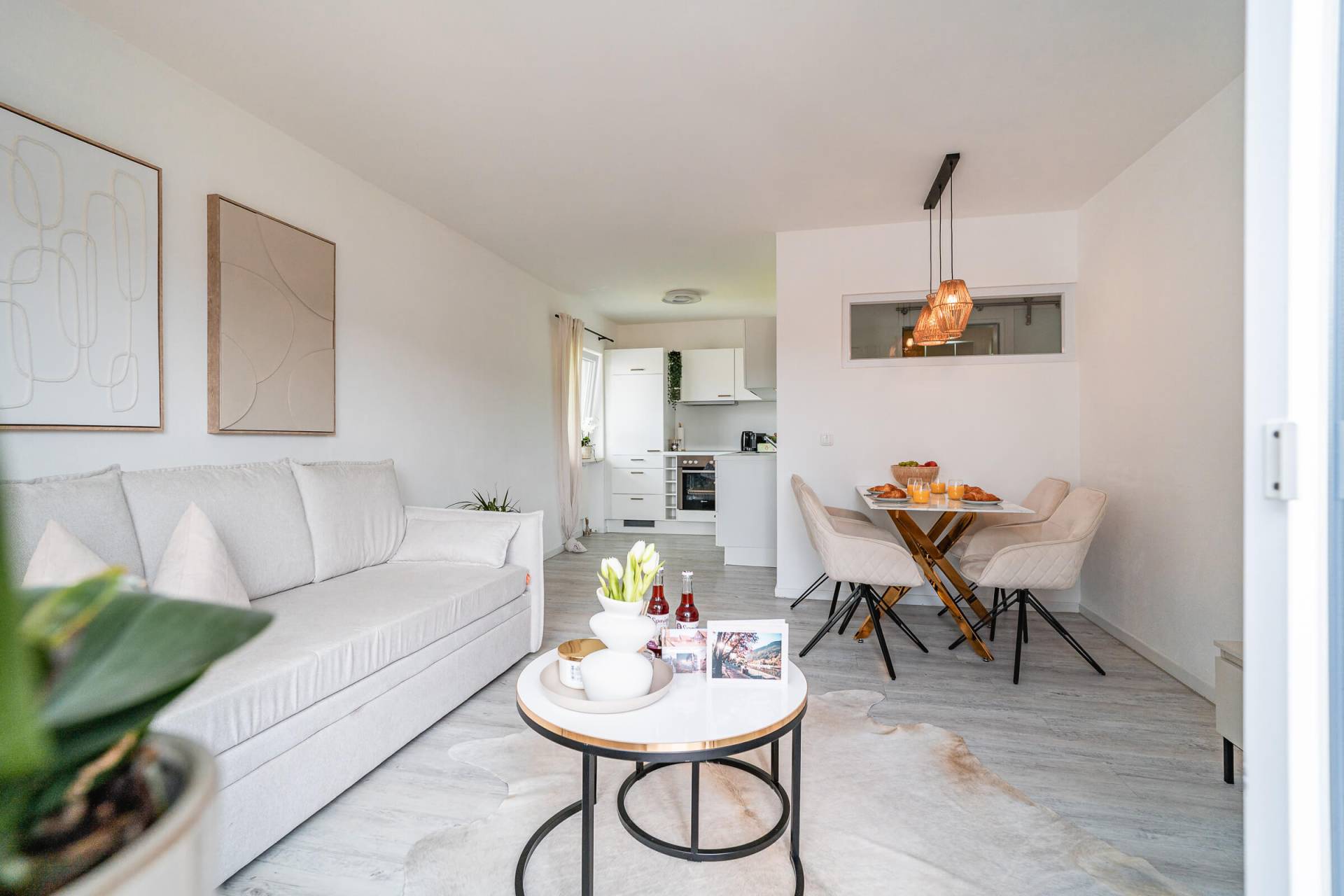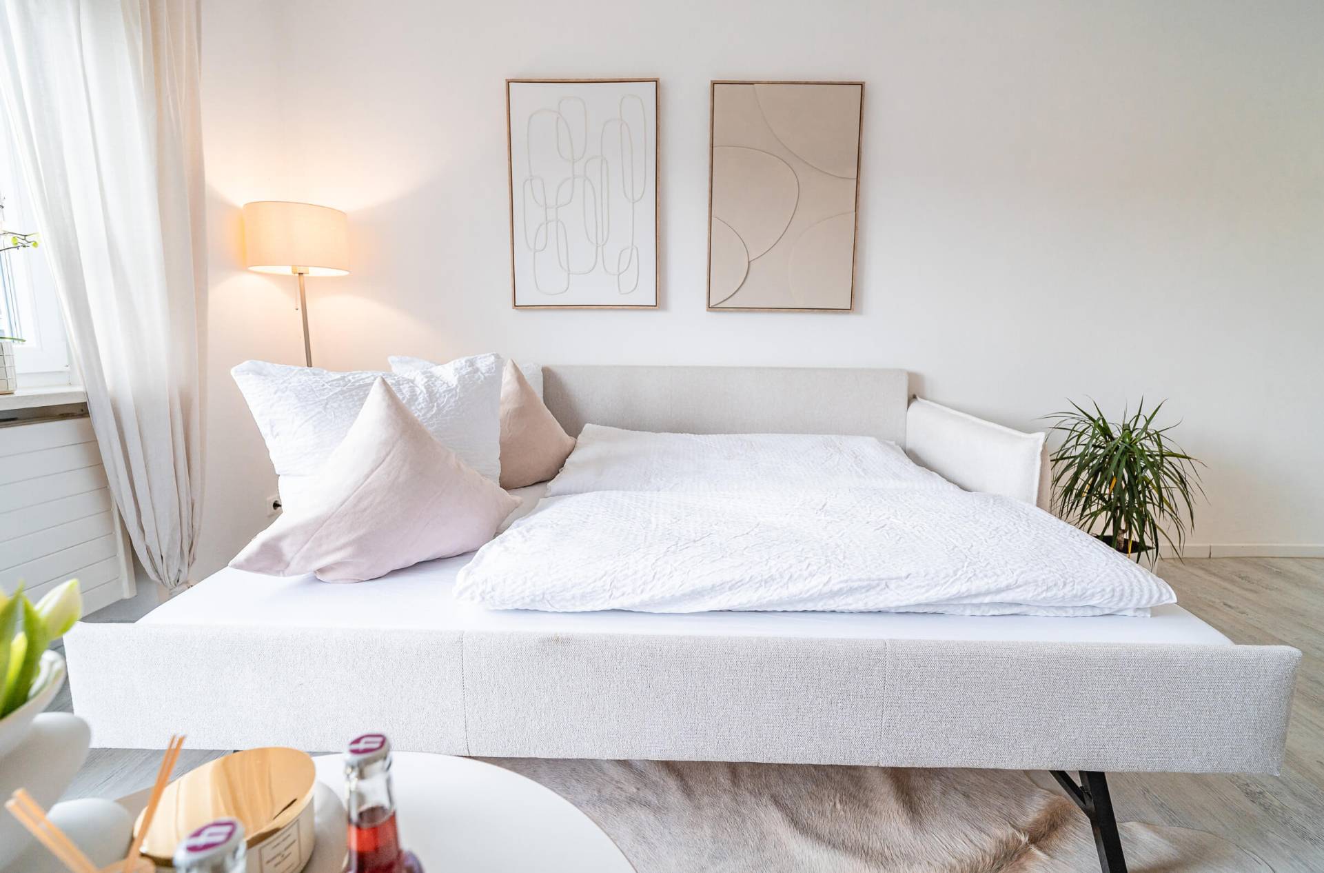 Unsere Unterkunft ist geschmackvoll in warmen Beigetönen eingerichtet, die eine gemütliche und einladende Atmosphäre schaffen.