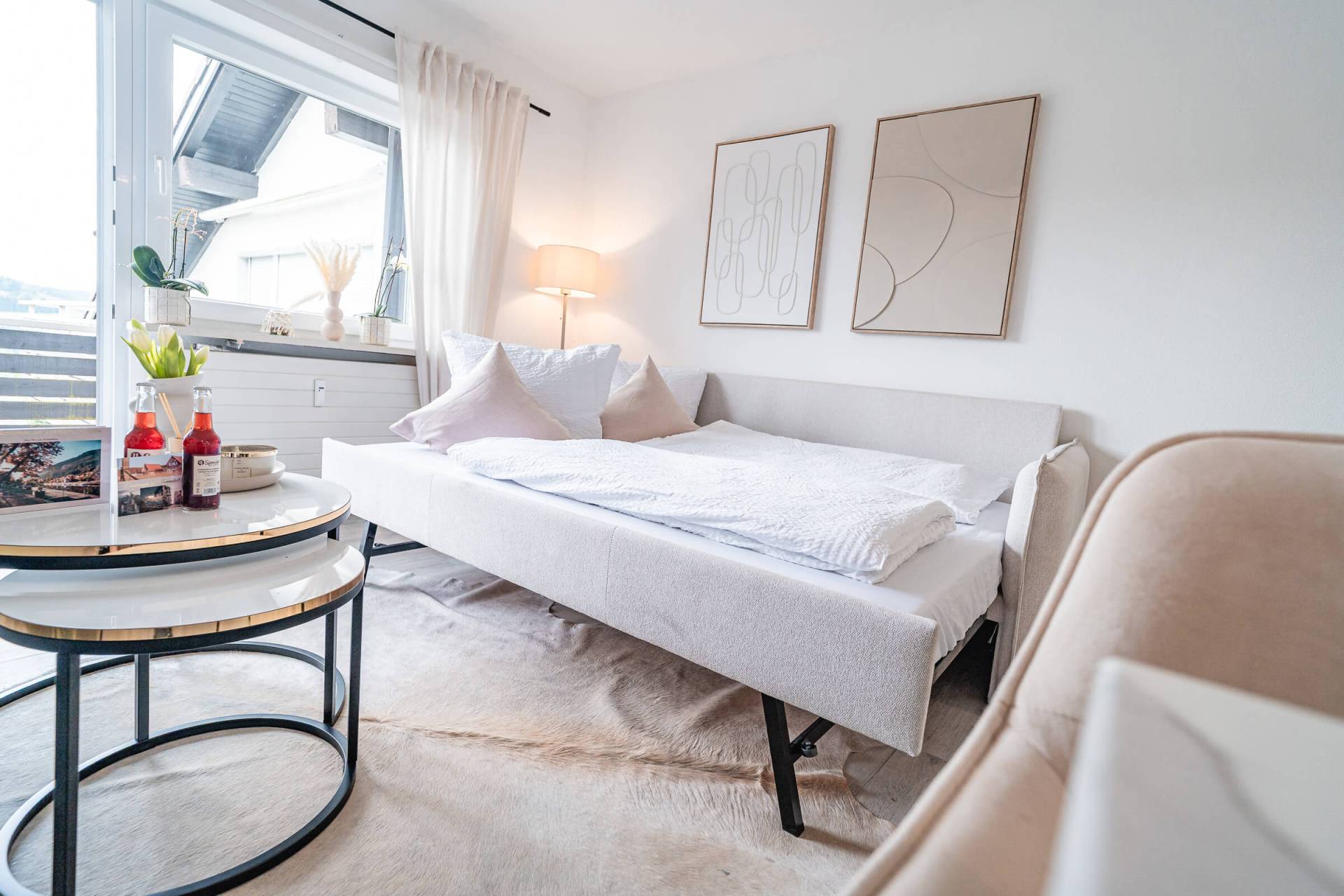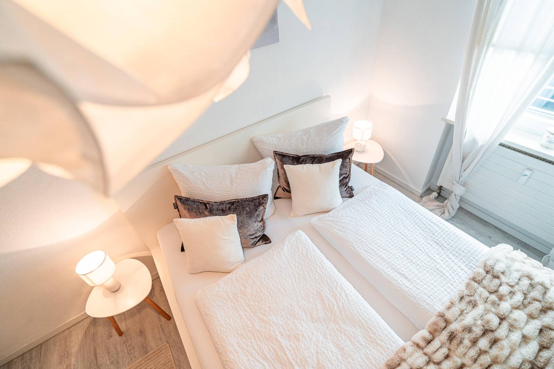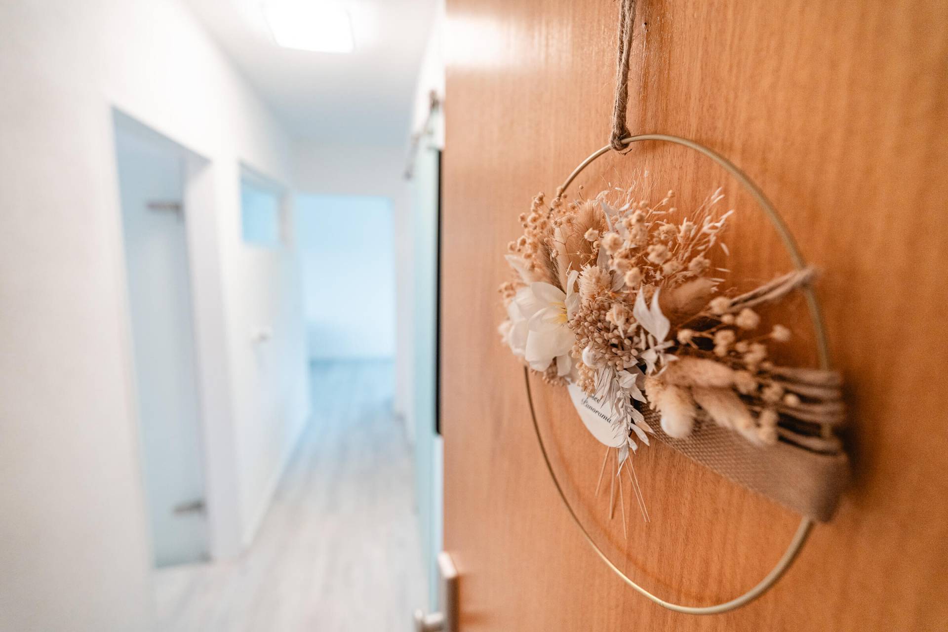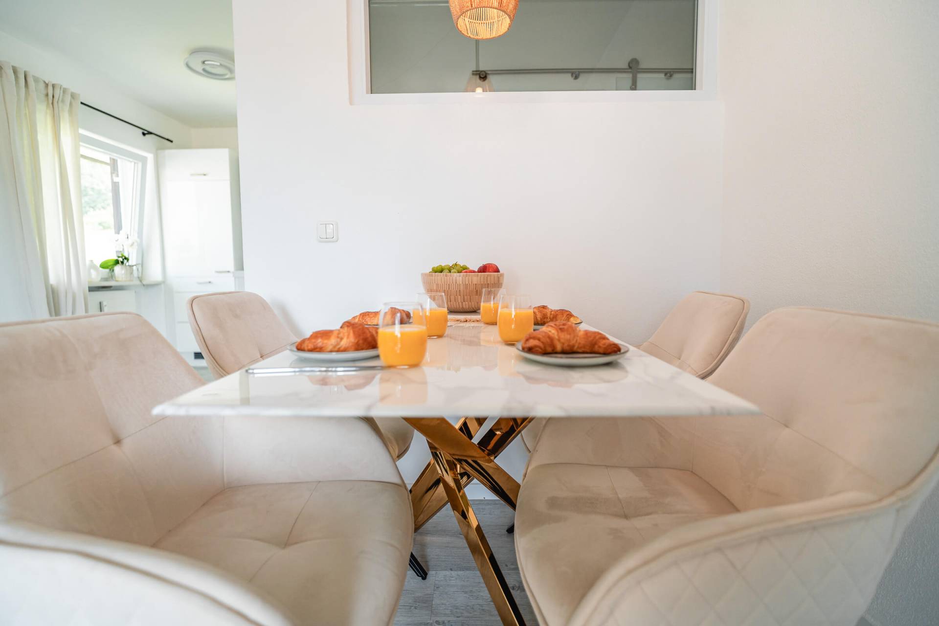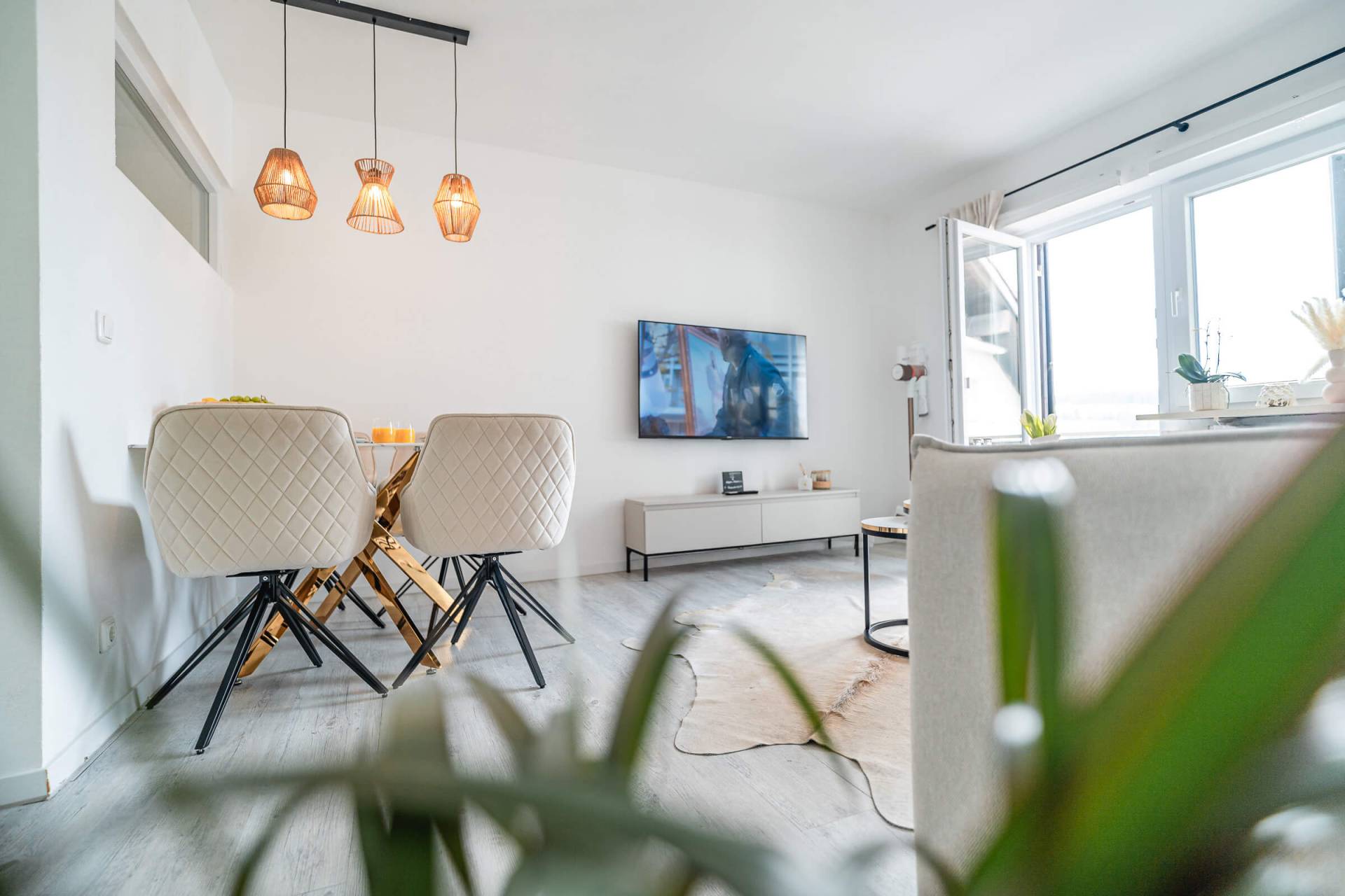Unsere Unterkunft ist geschmackvoll in warmen Beigetönen eingerichtet, die eine gemütliche und einladende Atmosphäre schaffen.