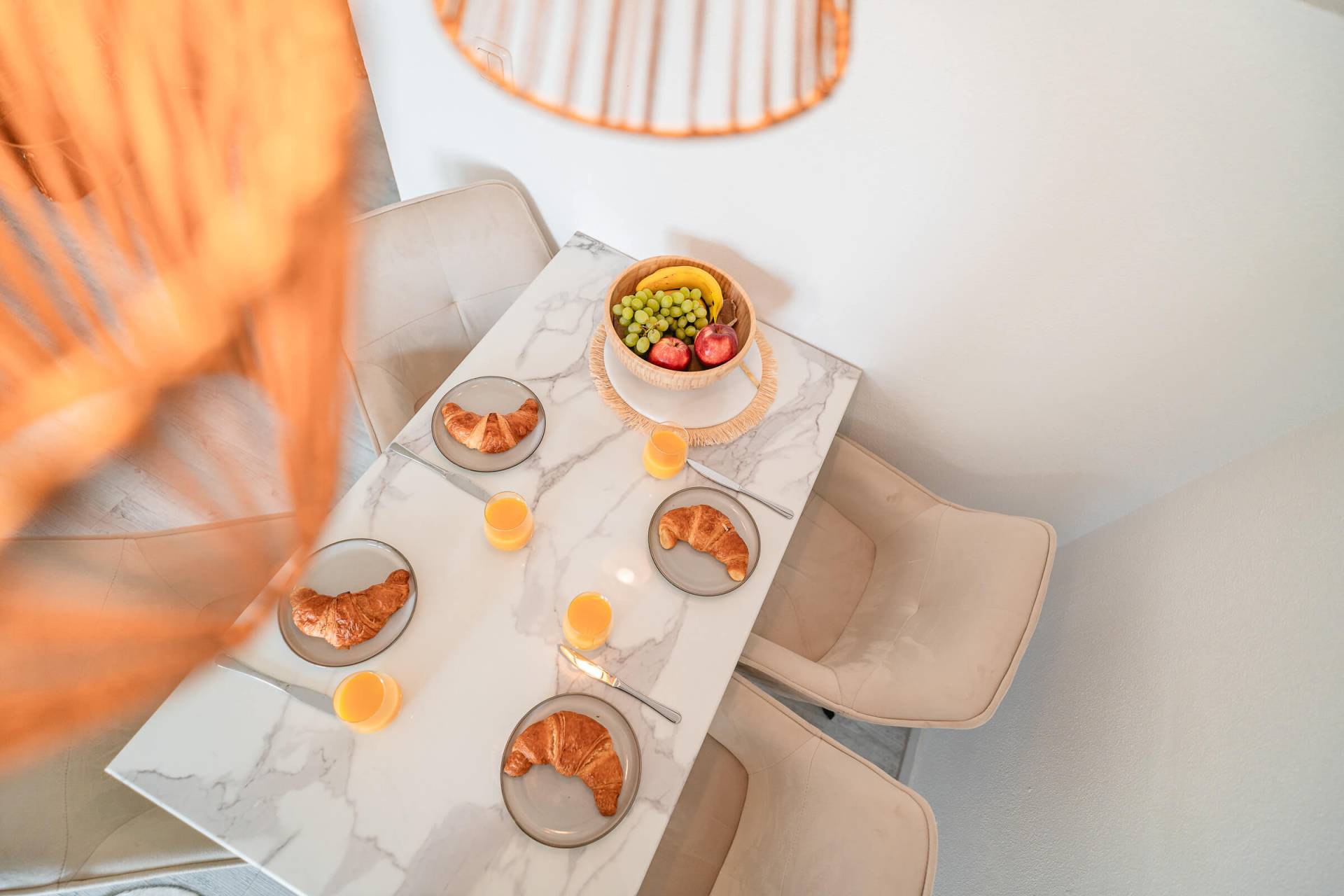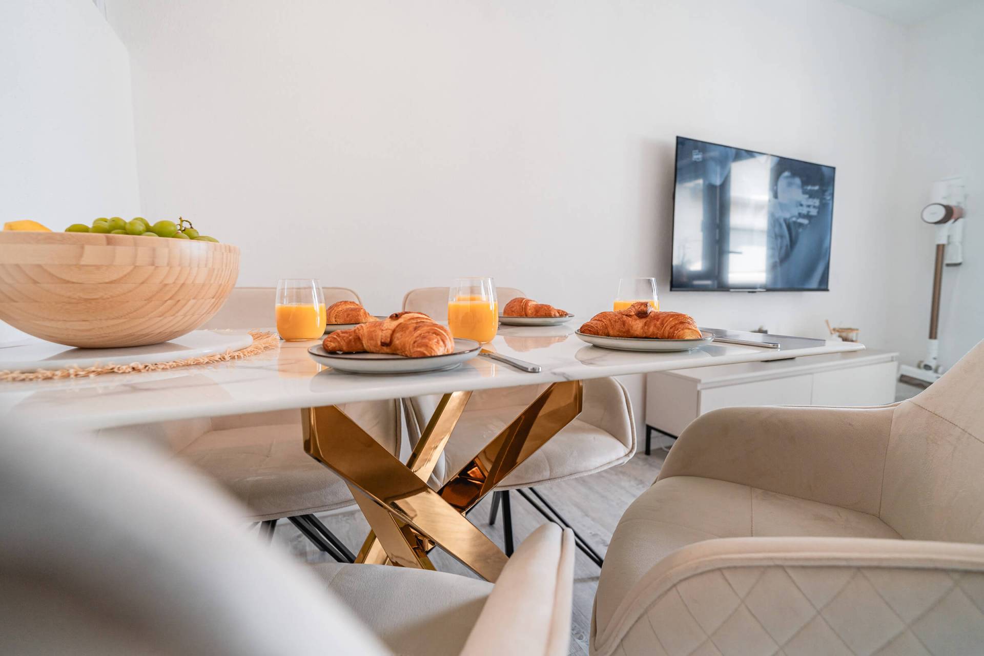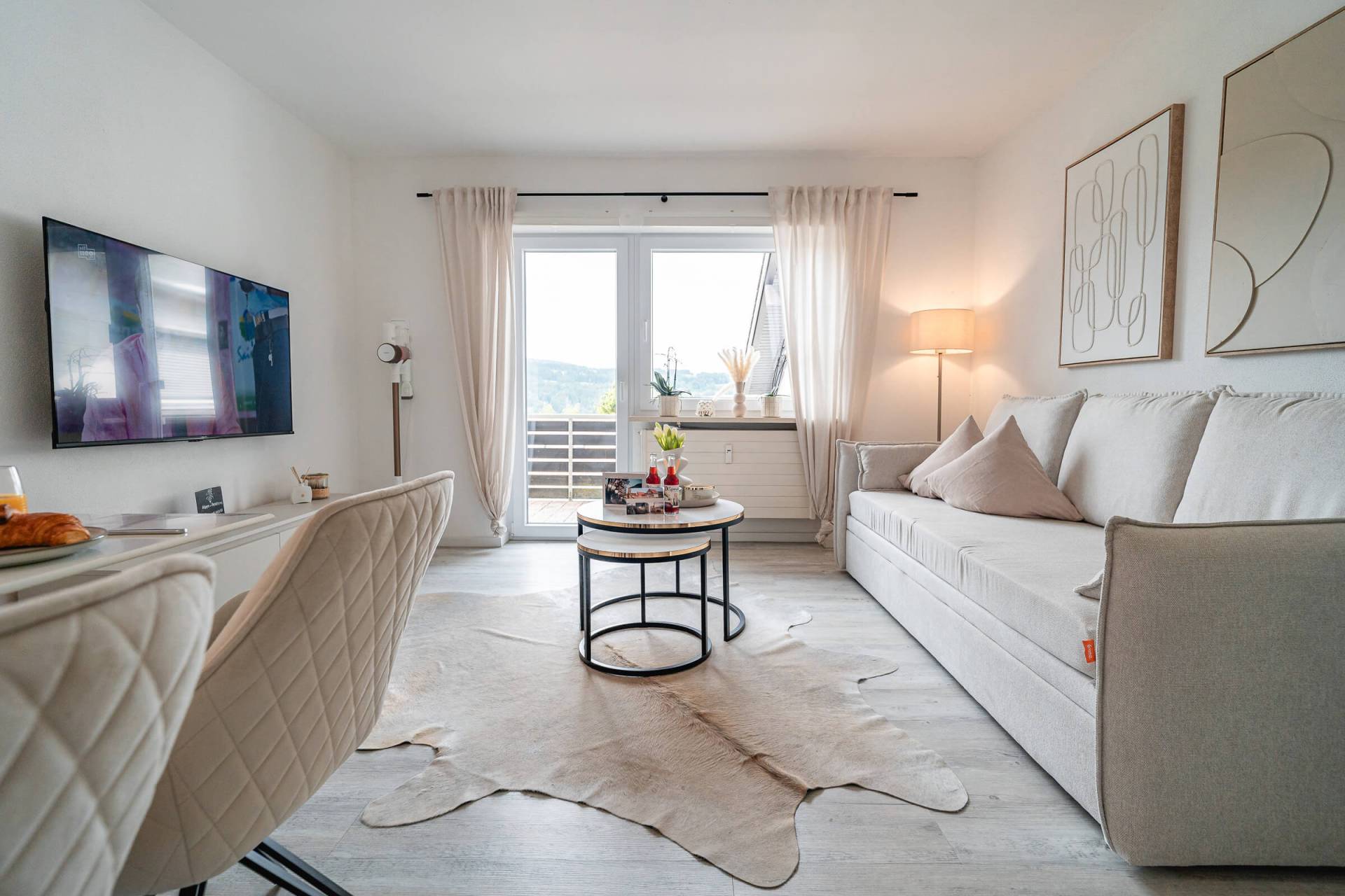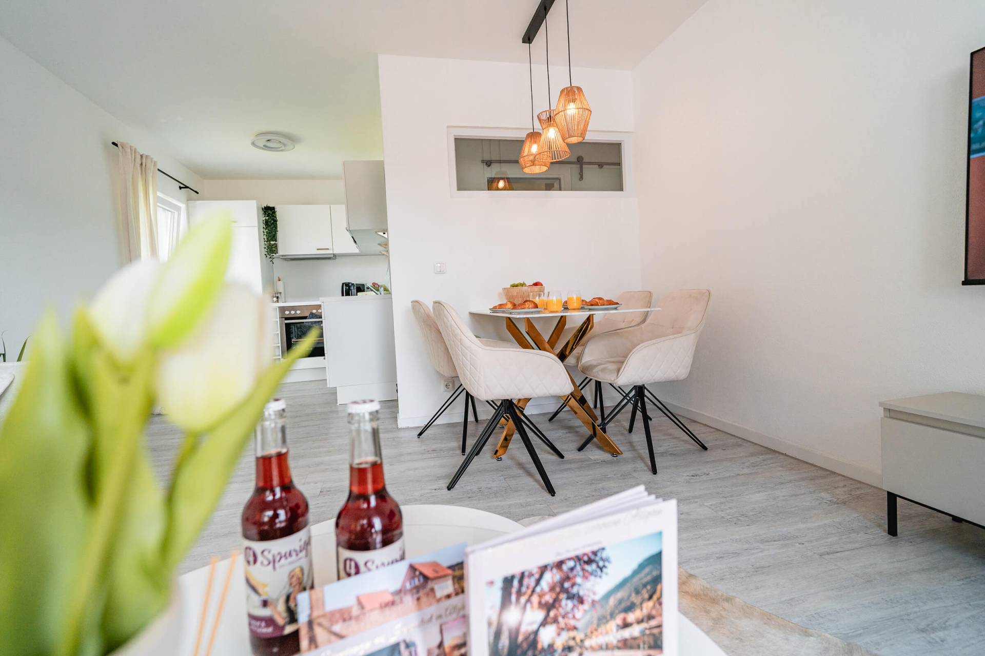 Unsere Unterkunft ist geschmackvoll in warmen Beigetönen eingerichtet, die eine gemütliche und einladende Atmosphäre schaffen.