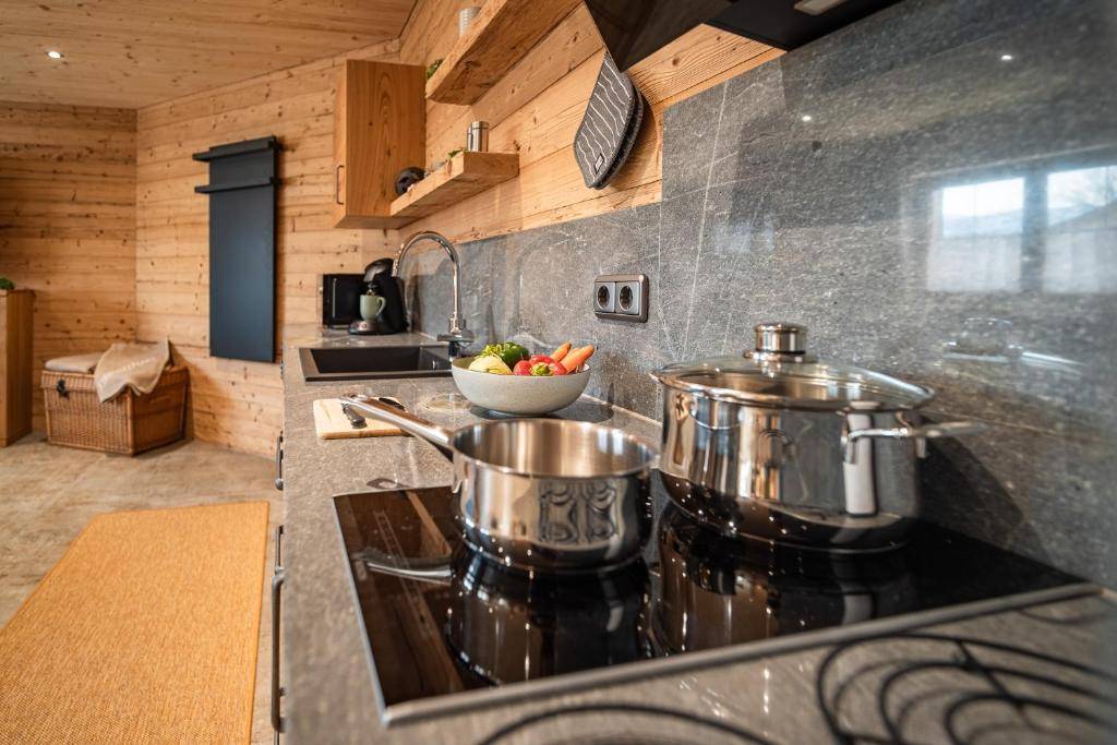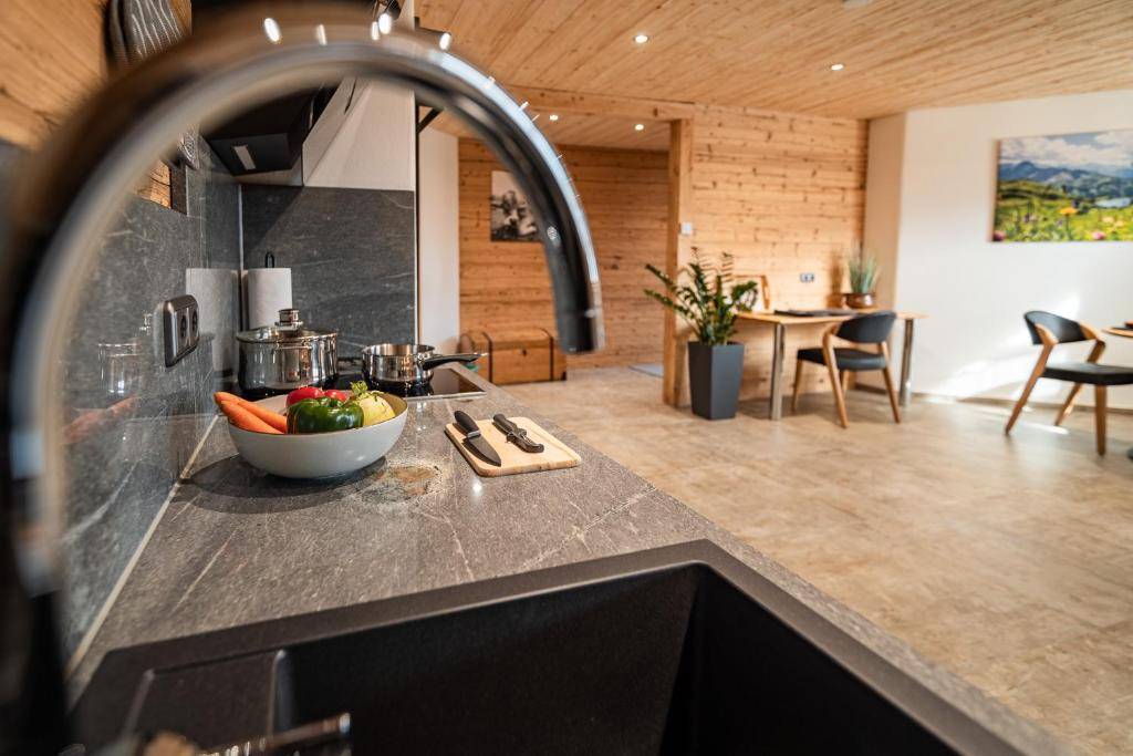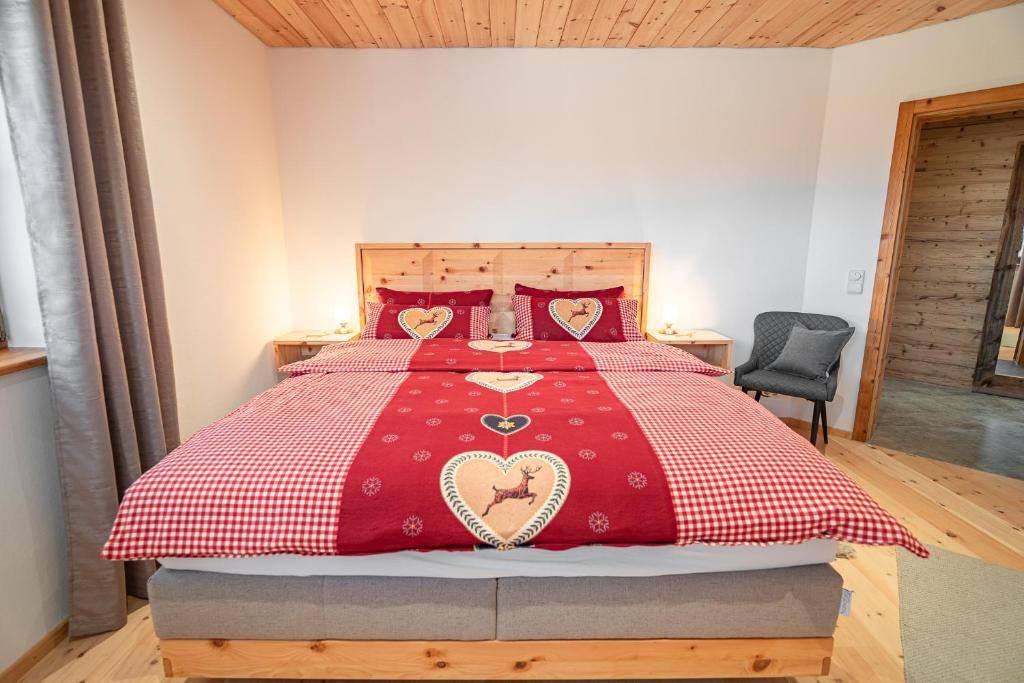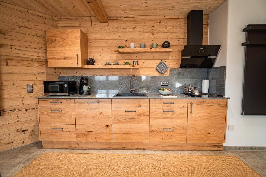 – perfekt für Kochabende mit alpinem Flair. Das Schlafzimmer besticht durch ein großes, komfortables Bett, liebevolle Details und heimeliges Holzambiente.