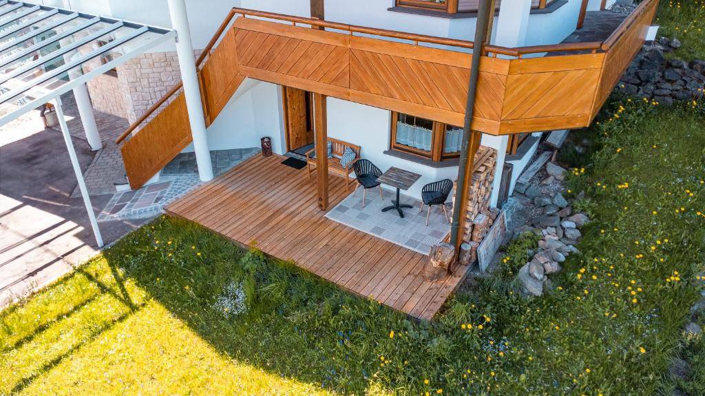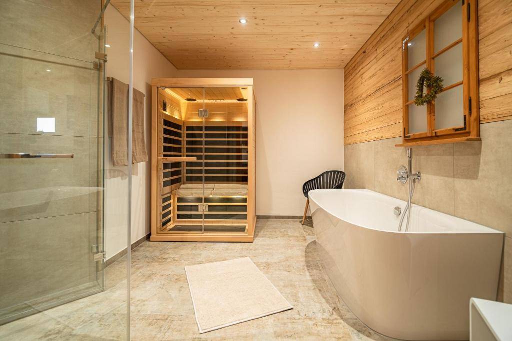 Ein weiteres Highlight ist der Zugang zur eigenen Terrasse mit gepflegtem Gartenbereich – ideal für sonnige Stunden, ein Frühstück im Grünen oder einfach zum Entspannen mit Blick auf die beeindruckende Bergwelt. Die ruhige Lage abseits vom Trubel macht dieses Chalet zur perfekten Erholungsoase für Naturfreunde, Paare gleichermaßen.